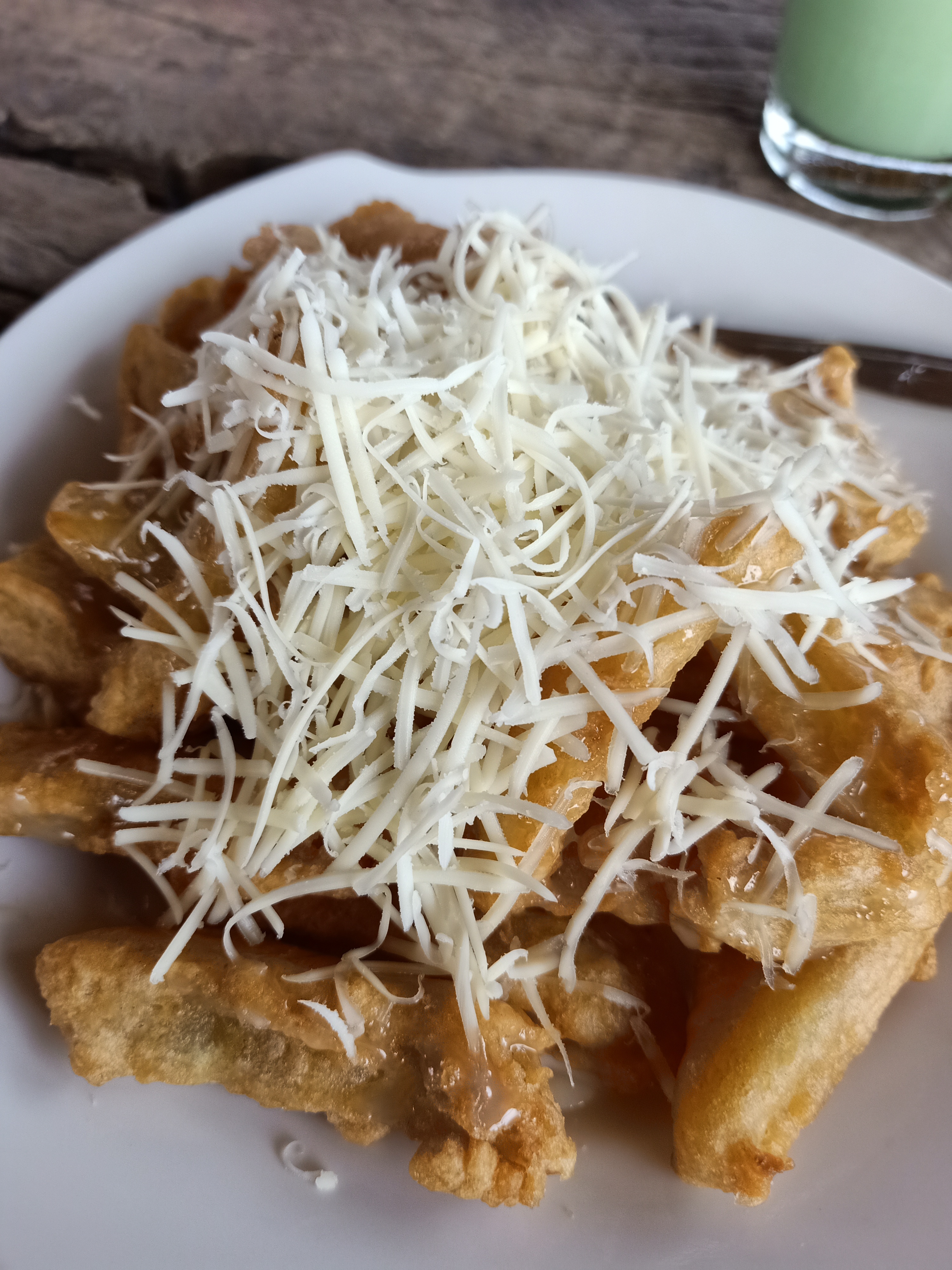 Snack dipukul rata hargaya Rp. 15.000,- untuk semua jenis. Satu porsi dapatnya banyak untuk dimakan bersama. Ini penampakan ubi cilembu chesse. Asli ini enaaak. Rasa manis ubi cilembu dipadu asin dan gurih keju. Dibalur tepung jadi krius di luar dan empuk di dalam. Ubi cilembunya udah manis, sebenernya tanpa tambahan kucuran susu kental manis udah oke. Tapi dikucuri SKM juga makin enak. Hehehe.